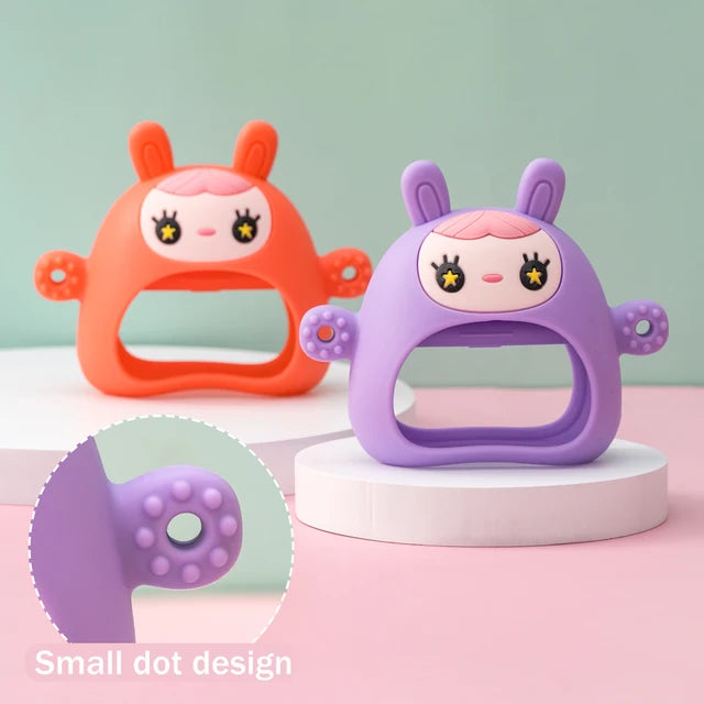 A soft, BPA-free silicone teether designed to soothe sore gums while keeping babies entertained. Perfect for little hands and safe for everyday use.